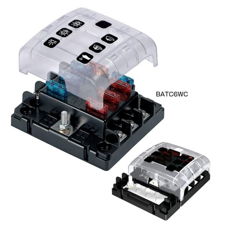30A迄のヒューズを使用できます。 ヒューズBOX本体では100Aまでの電流が流せます。 スペアヒューズ2個を収納するホルダー付で、ターミナルはクイックコネクター仕様になります。 専用のATCバスバーはカウンタークロックシステムにより簡単に装着も可能です。 |